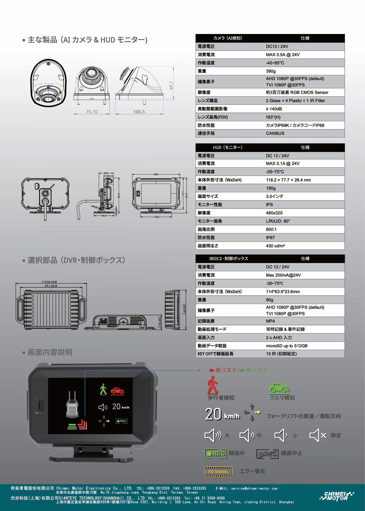 弊社の「iCam 270 産業用AI検知システム」は、市場初の革新的な製品として、フォークリフトをはじめとする産業車両向けに開発されたモデルです。単一のAIカメラで270度の広範囲検知を実現し、倉庫や建設現場などにおける作業の安全性向上に大きく貢献いたします。商用車分野においては、UN R159規則に準拠したMOISおよびBSISシステム、さらにUN R46対応の高性能電子ミラー(CMS)代替ソリューションを展開しております。また、レベル2以上の自動運転を見据えた映像プラットフォームの開発もすでに進行中です。